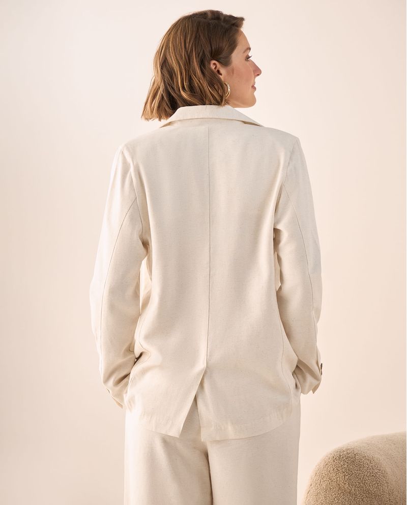 Su corte oversized moderno se adapta cómodamente a diferentes siluetas sin perder elegancia. Las mangas largas con botones decorativos y las solapas estructuradas crean una línea sofisticada que funciona tanto para figuras curvilíneas como rectas, ofreciendo ese balance entre comodidad contemporánea y formalidad clásica.