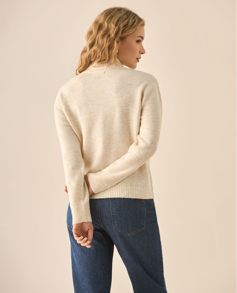 Una caricia para los días fríos. Este buzo de textura suave, con cuello alto, manga larga y terminaciones acanaladas, te envuelve con una elegancia discreta. Ideal para crear looks con estilo o disfrutar la comodidad sin perder sofisticación.