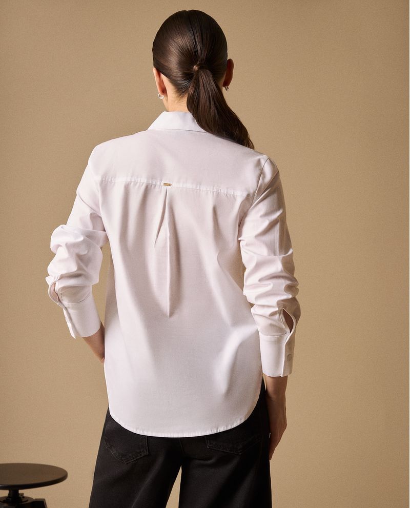 Porque los bordados en el cuello crean ese detalle memorable que diferencia tu look profesional del resto. Una camisa blanca que realmente destaca por sus acabados únicos.