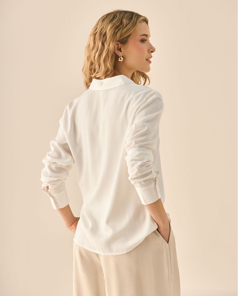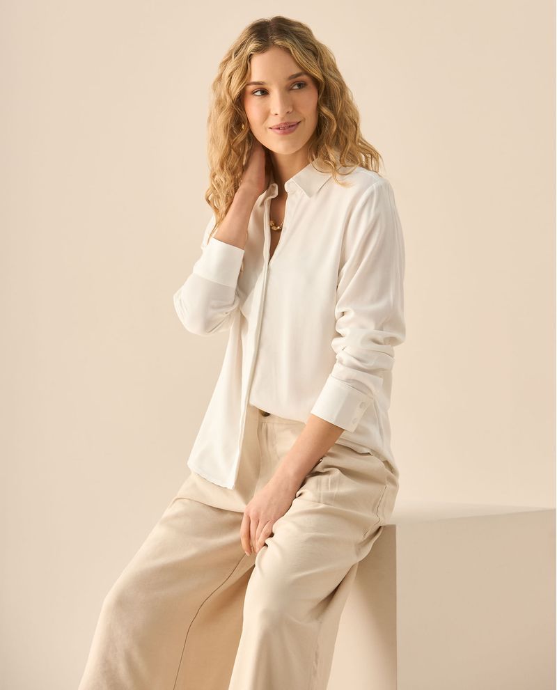 Sutil, pulida y pensada para quienes valoran los detalles que no gritan, pero se notan. Esta camisa de manga larga y cuello clásico apuesta por una elegancia pulida gracias a su perilla de botones ocultos y puños con cierre delicado. Una prenda versátil que se adapta con naturalidad a looks formales o informales, siempre con una estética cuidada.
