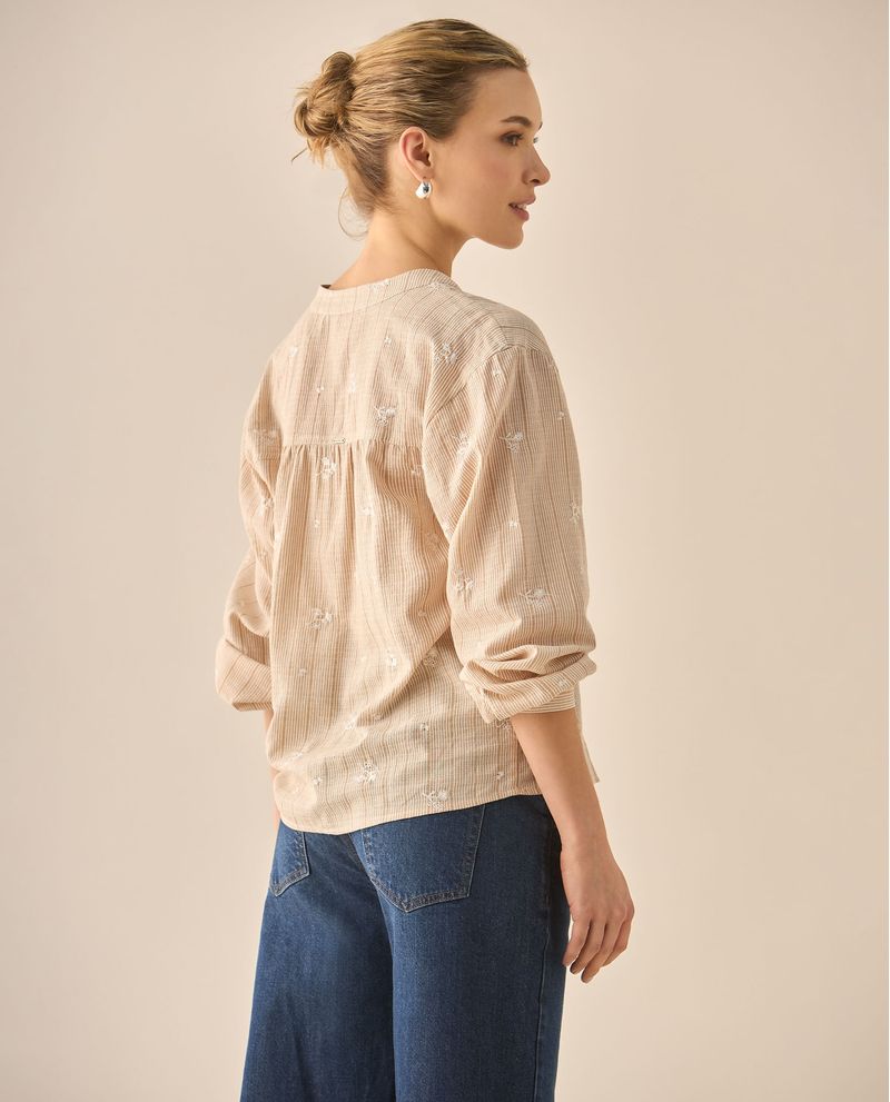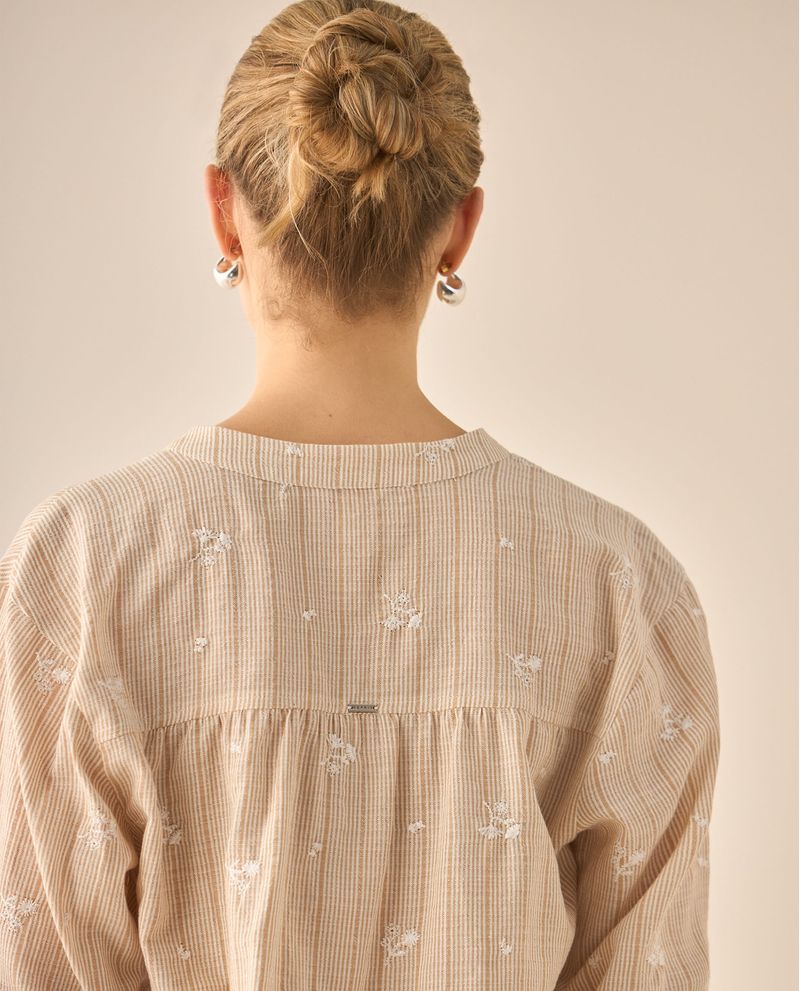 Nunca es suficiente estilo cuando se trata de elevar una camisa clásica, por eso creamos para ti esta manga larga de botones que ahora cuenta con detalles que amarás: cuello neru, apliques de flores bordadas y detalles súper delicados y femeninos que no querrás dejar de usar todos los días.