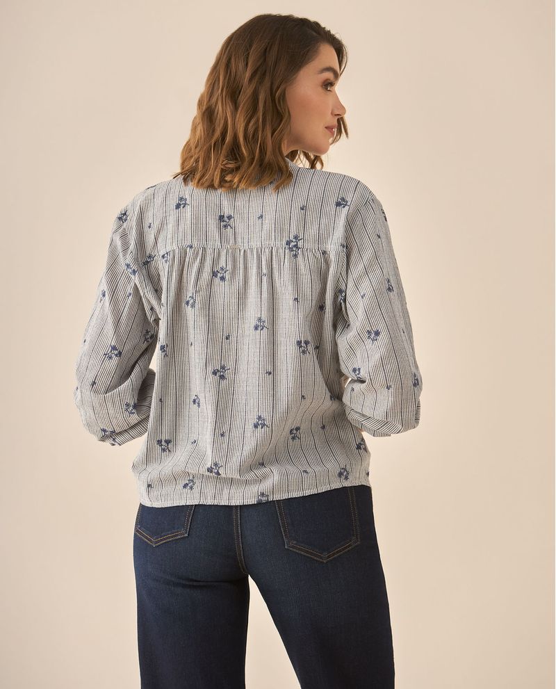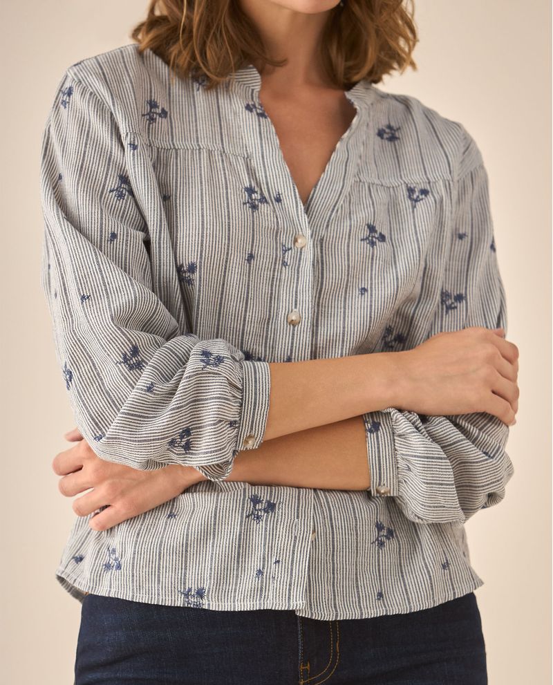 Nunca es suficiente estilo cuando se trata de elevar una camisa clásica, por eso creamos para ti esta manga larga de botones que ahora cuenta con detalles que amarás: cuello neru, apliques de flores bordadas y detalles súper delicados y femeninos que no querrás dejar de usar todos los días.