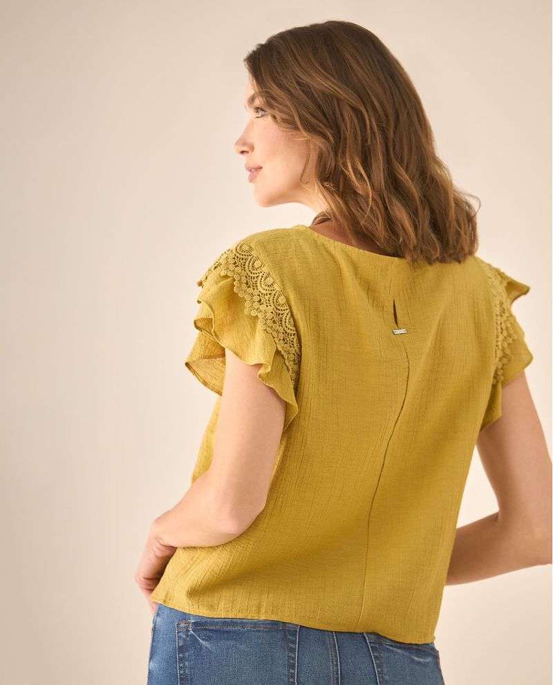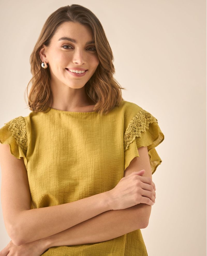 Una pieza que habla de estilo. Esta camisa sin mangas con bolero en los hombros y tejido en las mangas combina detalles encantadores en una silueta ligera. Su textura y abertura en lágrima la hacen perfecta para crear looks románticos y delicados.