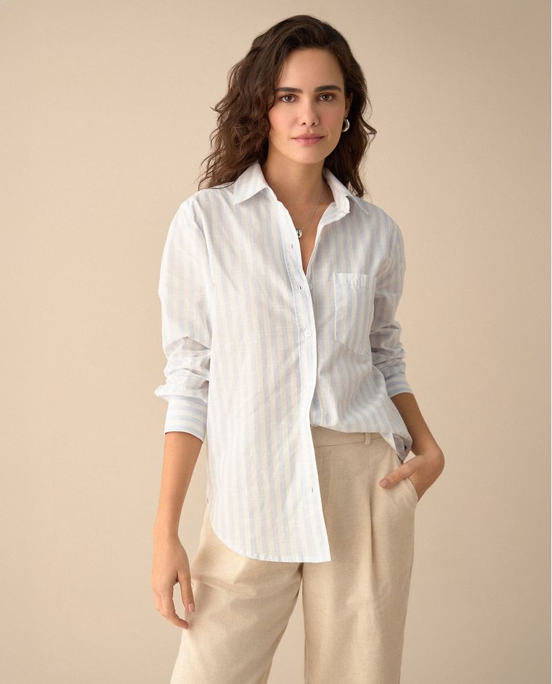 Los diseños a rayas son perfectos para que destaques en tus planes formales favoritos. Usa su manga larga a tu favor para sentirte segura y protegida todos los días, sin dejar de lado el detalle clásico que brindan las mangas largas y los ajustes de botones. ¡Destaca sin esfuerzo con Esprit!
