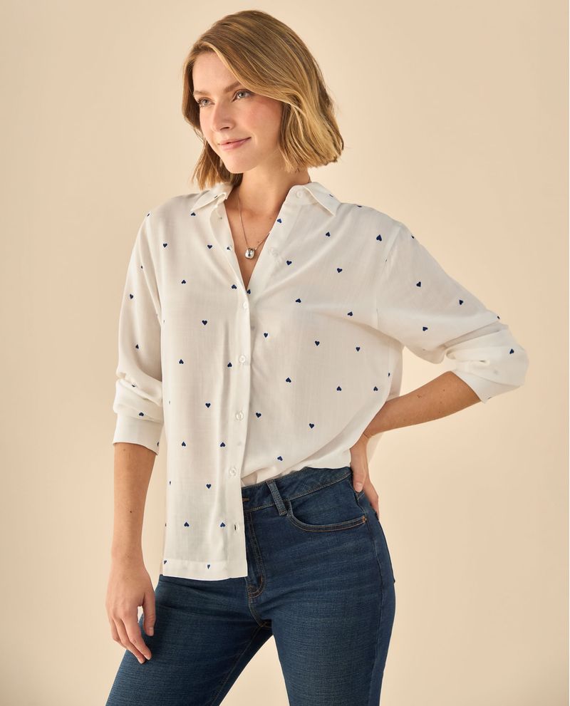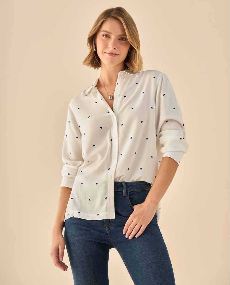 Camisa con delicado estampado de corazones que aporta feminidad sutil a tu guardarropa profesional. Su corte regular se adapta cómodamente a diferentes siluetas, mientras que el cuello clásico y los acabados cuidados garantizan versatilidad desde reuniones matutinas hasta cenas casuales. Ideal para quienes buscan ese equilibrio entre profesionalismo y personalidad.