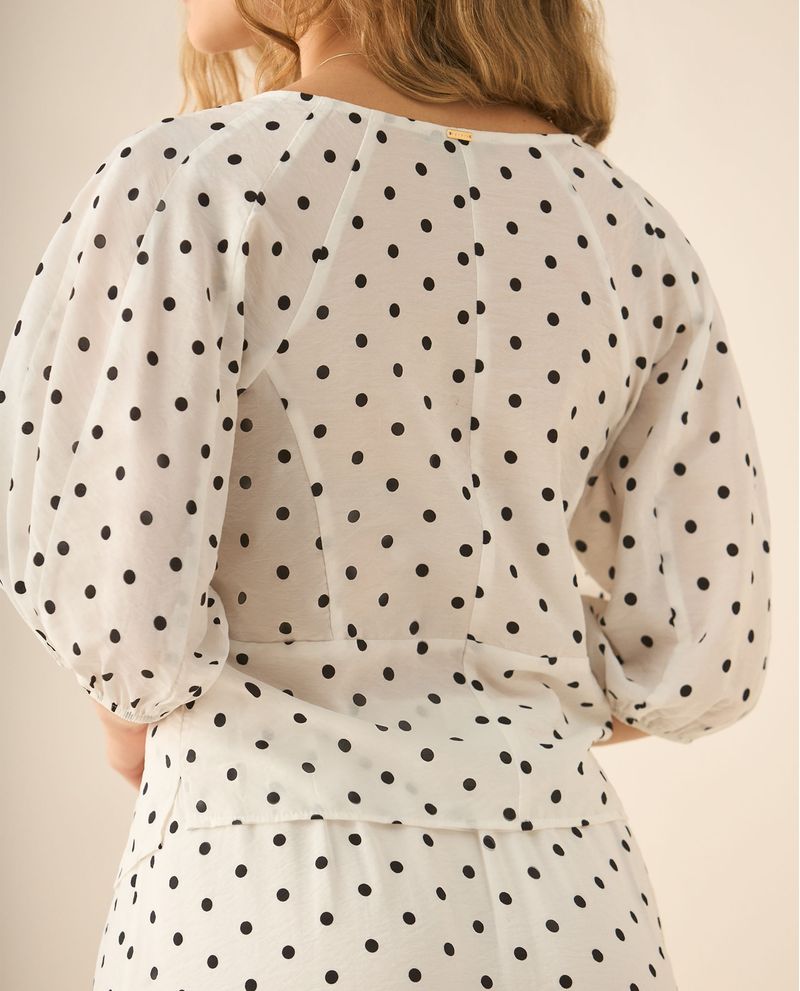 ¡Silueta favorecedora! Esta camisa de manga 3/4 con escote en V te permitirá crear looks tan auténticos como llamativos, brindándole a cada uno de tus planes ese toque novedoso al mejor estilo Esprit. Su diseño de puntos y corte en cintura la vuelven ideal para combinar con jeans o faldas.