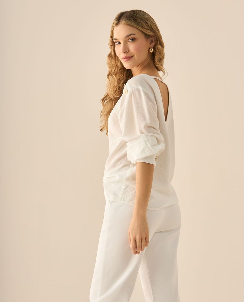¡Un twist inesperado! Esta camisa tiene todo lo que has estado buscando para acompañar tus nuevos planes favoritos: escote redondo al frente, V en la espalda y botones decorativos en hombro. ¡Una pieza que desafía lo clásico con pequeños detalles que hacen toda la diferencia! Llévala a casa y redescubre tu esencia.