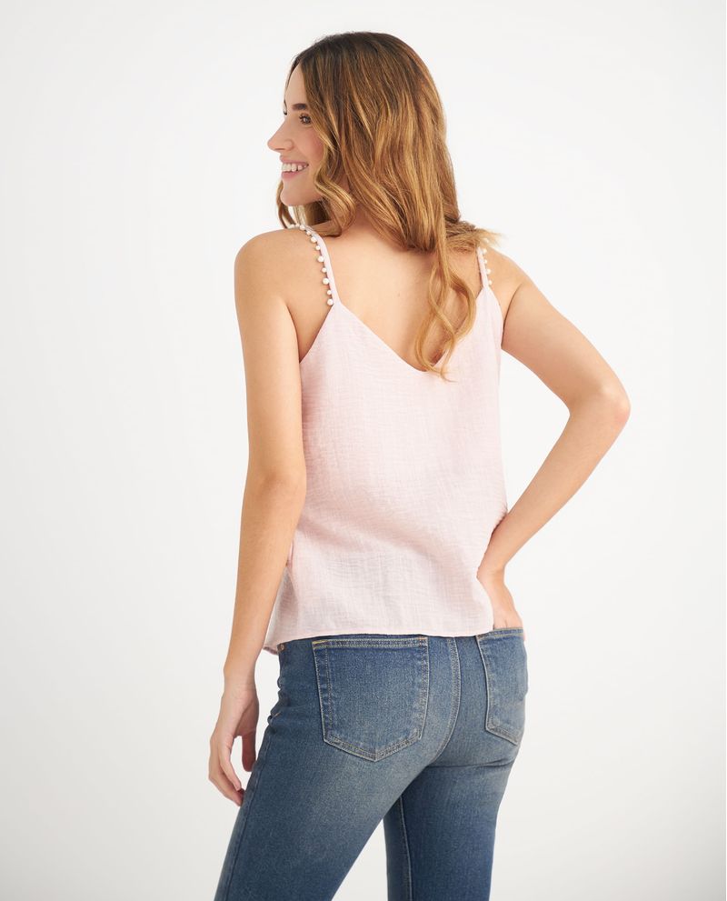 ¡La prenda que necesitas para sentirte especial! Esta camisa de tiras con perlas decorativas le dará elegancia y sofisticación a tus looks diarios, a la vez que su escote garantiza comodidad y estilo, haciendo de esta prenda un imprescindible en tu armario.