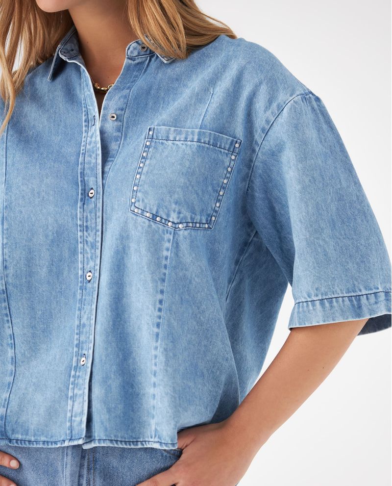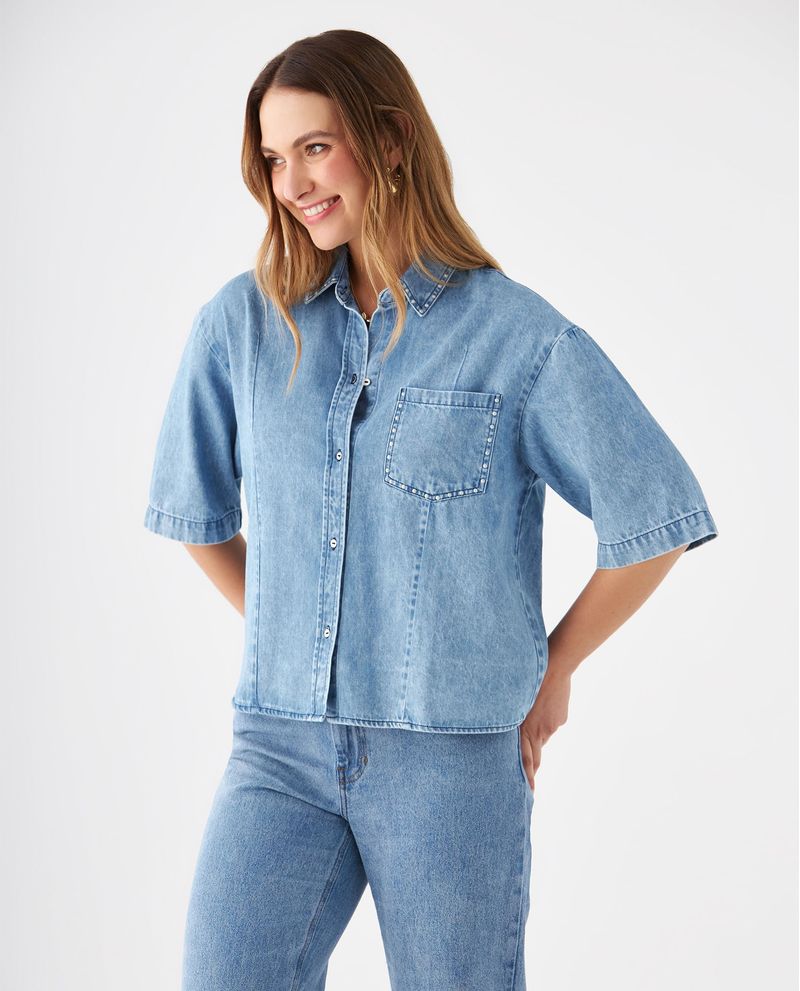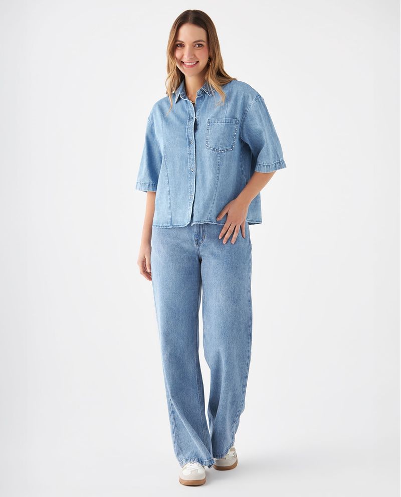 ¡Dale un toque más moderno a tus días! Las clásicas de siempre pero ahora renovadas, con detalles que no pasarán desapercibidos en ninguno de tus looks. Lleva esta camisa en denim liviano a tus planes casuales, días de oficina o fines de semana, pues es tan versátil que la podrás combinar con todo y en cuestión de segundos. Sus apliques en cuello y bolsillo delantero, te harán lucir más juvenil y a la moda, mientras gracias a su manga corta, conservas la comodidad y frescura que amas.