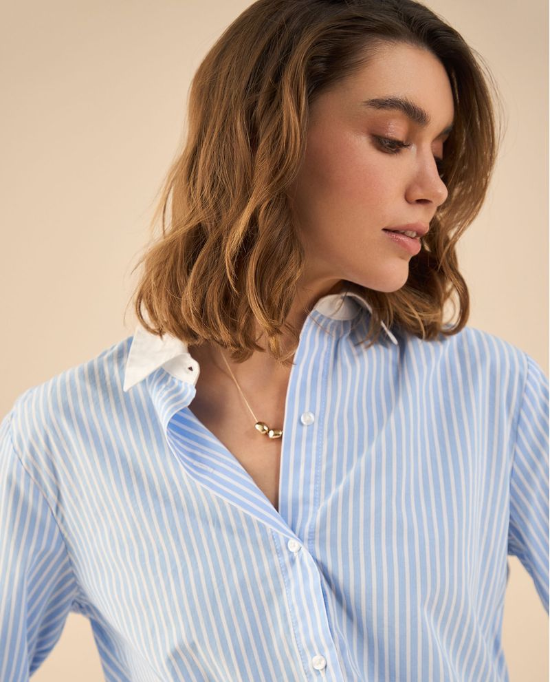 Rayas, fluidez y un largo asimétrico que le da personalidad propia. Esta camisa es para las mujeres que encuentran belleza en los detalles y que reconocer que lucir increíbles es una labor de todos los días.