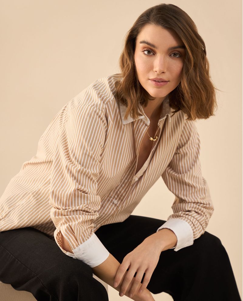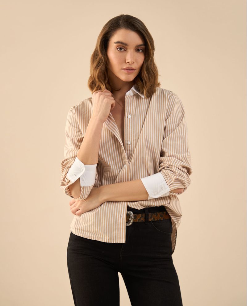 Rayas, fluidez y un largo asimétrico que le da personalidad propia. Esta camisa es para las mujeres que encuentran belleza en los detalles y que reconocer que lucir increíbles es una labor de todos los días.
