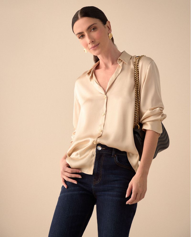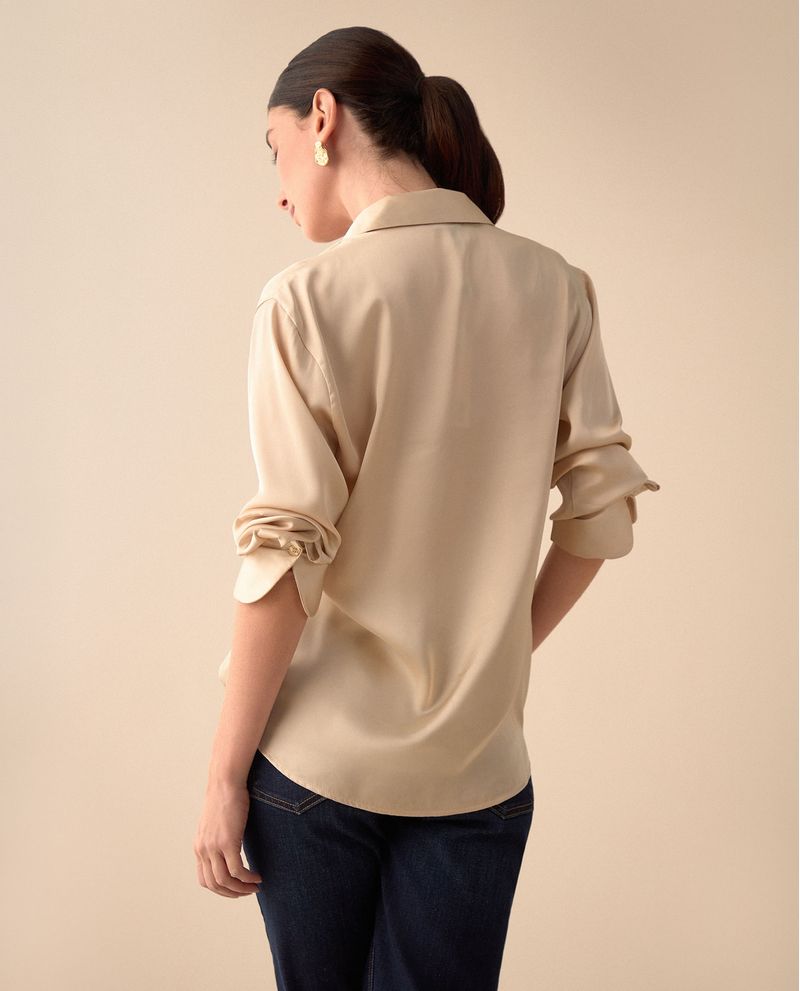 Un imprescindible para cualquier armario: camisa de manga larga con cuello clásico, perilla de botones y un ruedo curvo que le da un toque moderno. Los botones en los puños aseguran un ajuste perfecto y detallado.