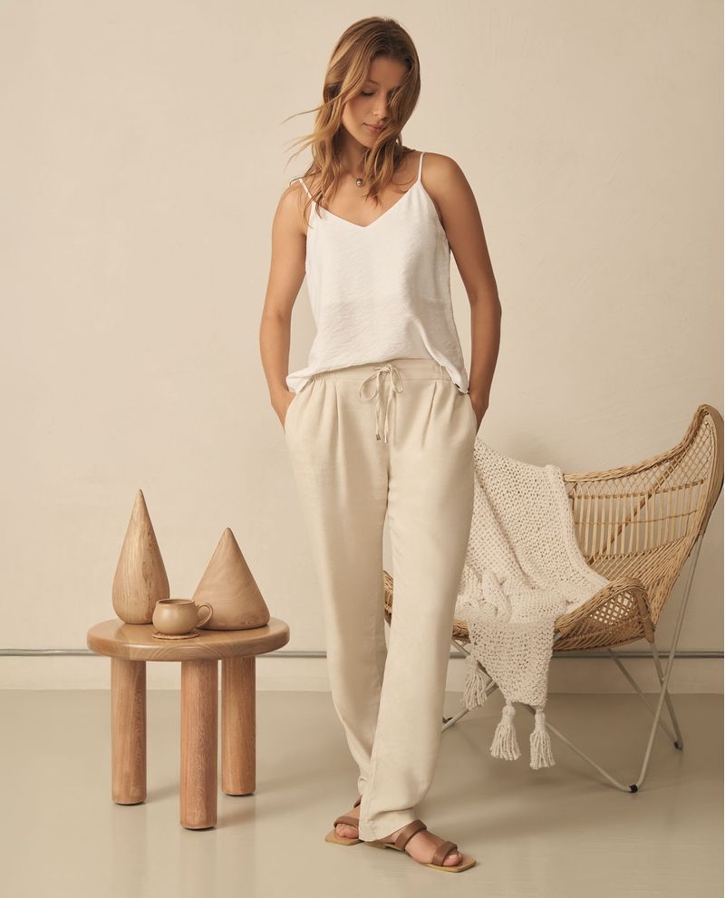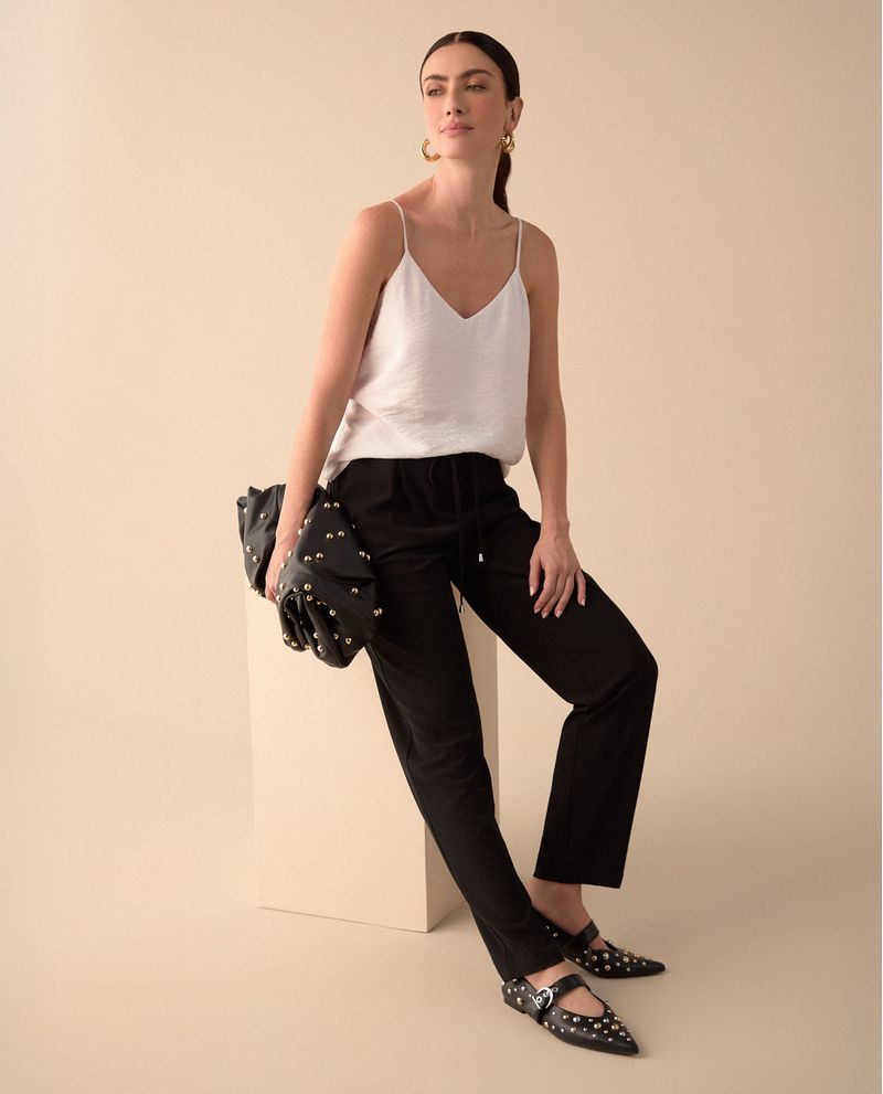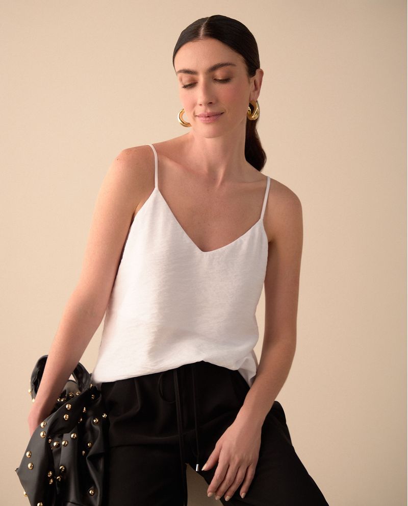 Ligera, fresca y femenina, esta camisa de tiras con escote en V es la definición de simplicidad encantadora. Su silueta tradicional la hace perfecta para días cálidos, destacando por su versatilidad y estilo desenfadado.