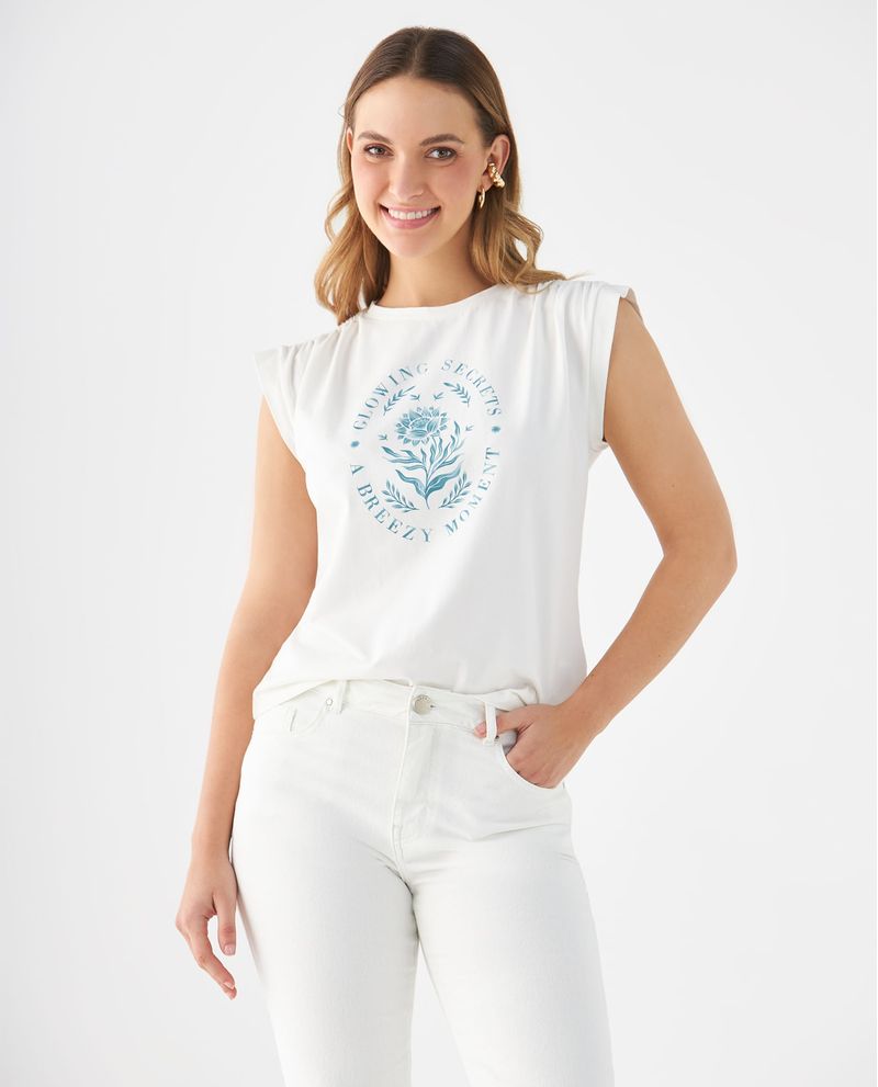 Atrévete a destacar con esta camisa de manga sisa rodada. Su cuello redondo y el detalle elástico en los hombros brindan un ajuste contemporáneo, mientras que el estampado en el frente le da un toque de originalidad y estilo. Perfecta para quienes desean un diseño moderno con un toque distintivo en su look diario.