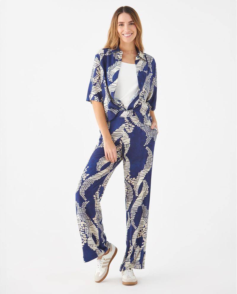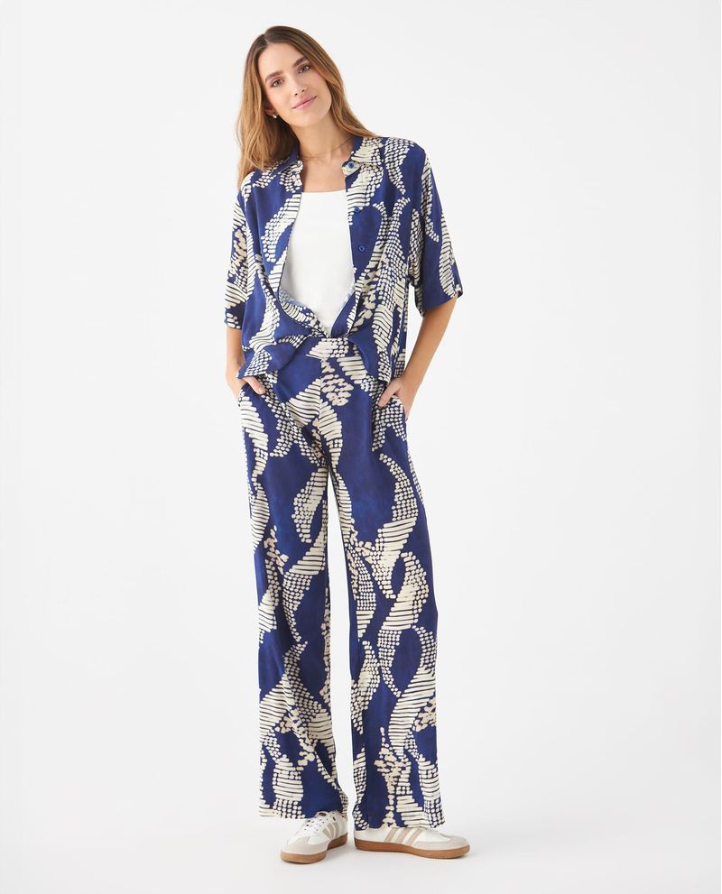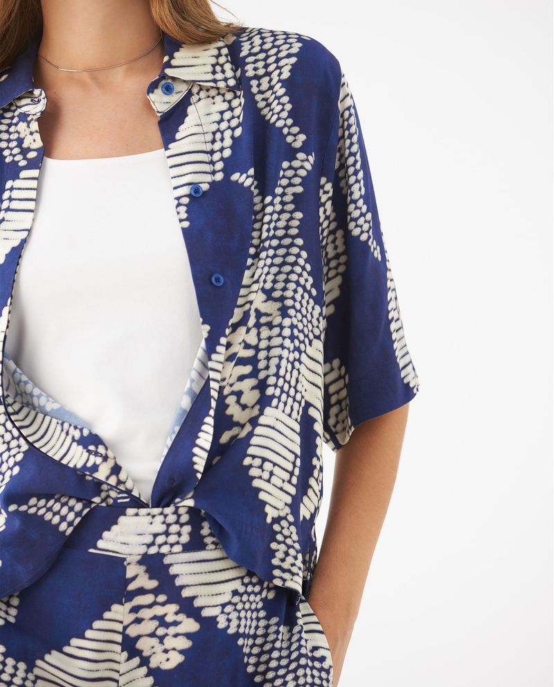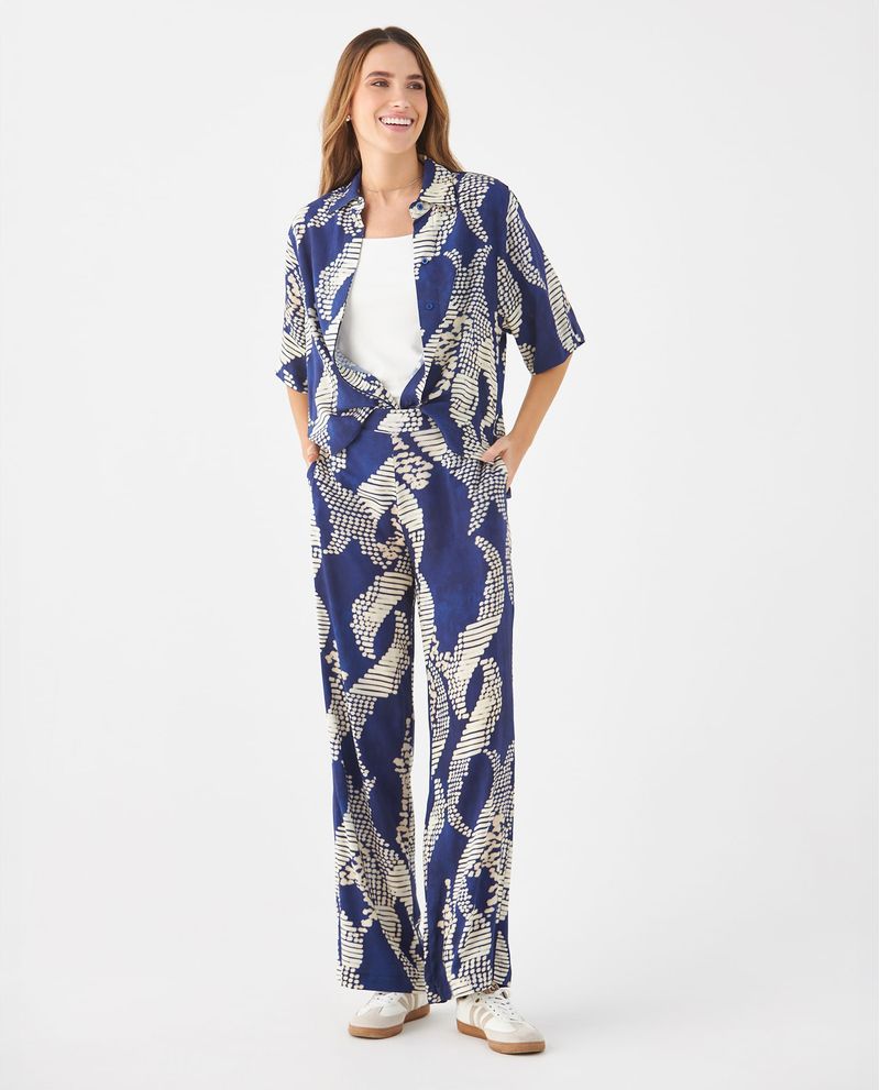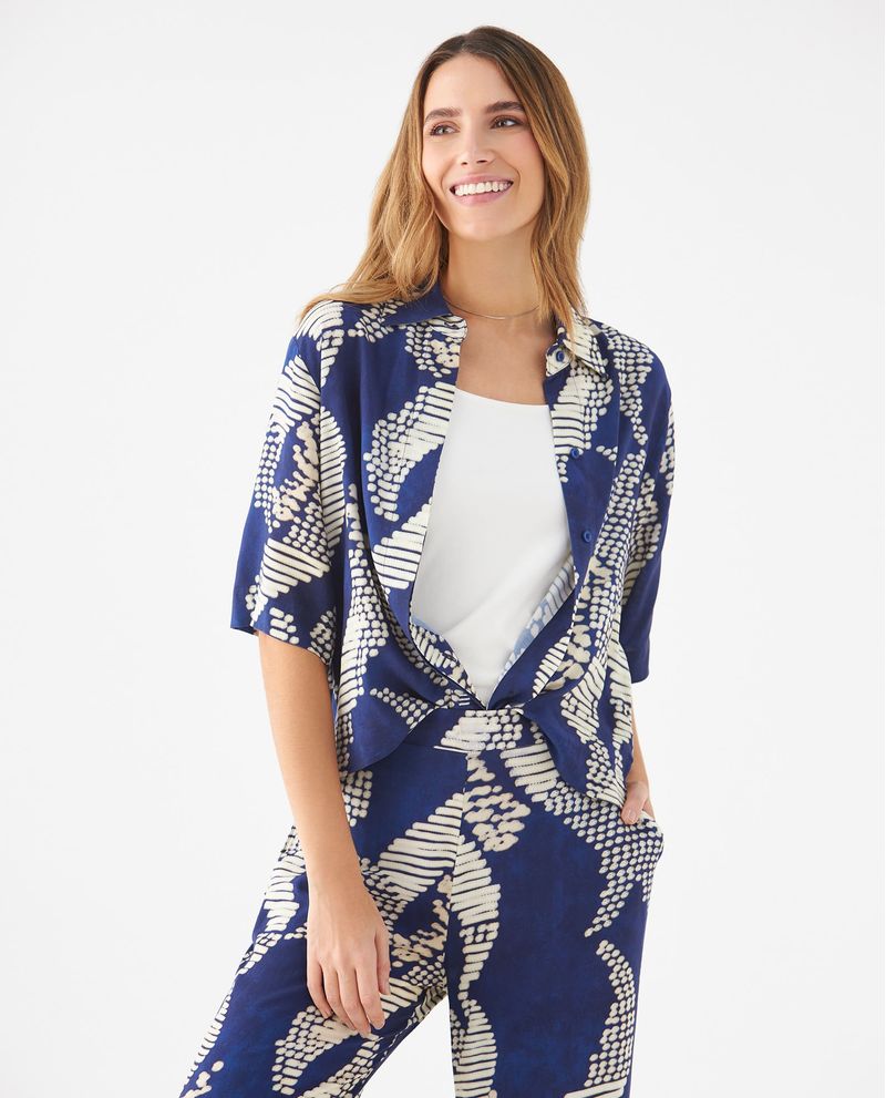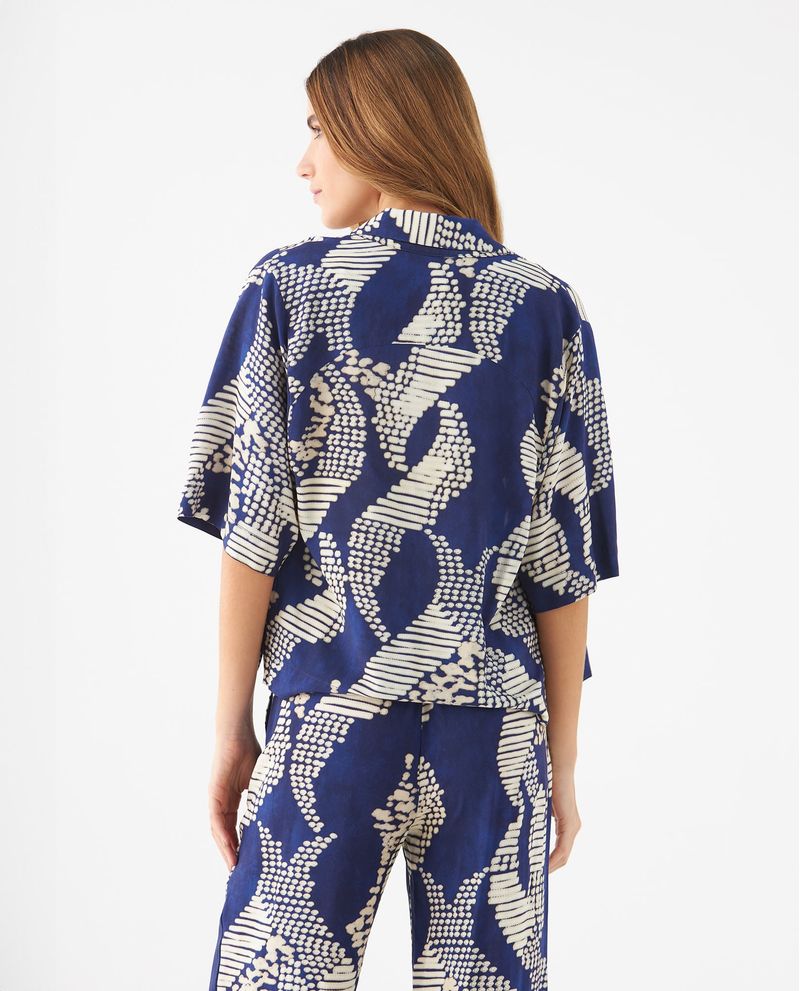 Renueva tu estilo con esta camisa de tela fluida, ideal para cualquier ocasión. Su diseño de manga corta y cuello clásico ofrece un toque de elegancia casual, mientras que la perilla de botones oculta aporta un acabado limpio y delicado. El estampado abstracto añade un aire moderno y artístico que la convierte en una pieza única y versátil de cualquier armario femenino. ¡Perfecta para destacar con un look fresco y contemporáneo! Lúcela en set para elevar el resultado.