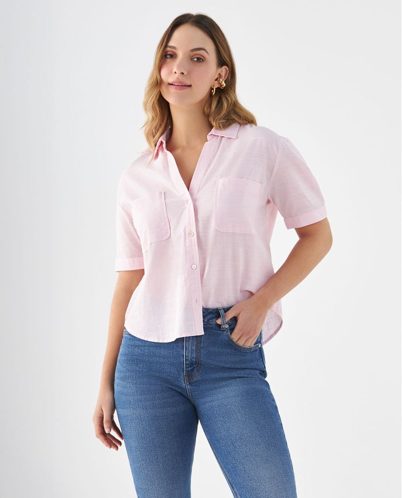 Siéntete preparada para declarar al mundo tu estilo clásico con esta camisa que te hará sentir tan cómoda como original, gracias a su manga corta, escote en V y perilla de botones. Un diseño icónico que se convertirá en tu aliado más versátil y práctico del clóset. Continúa brillando con elegancia y feminidad en tu día a día.