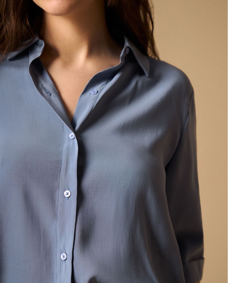 Camisa en rayón premium con caída natural y acabado suave al tacto. Su corte regular se adapta cómodamente mientras que los puños doblados añaden un toque distintivo. Transpirable y fácil de cuidar, funciona desde reuniones de trabajo hasta cenas casuales con igual elegancia.