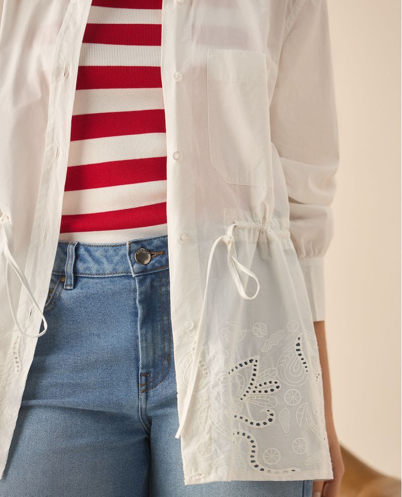 Una prenda que combina estructura y feminidad. Esta camisa de manga larga, con cuello clásico y canal con tiras ajustables en la cintura, se adapta con gracia a tu silueta. El bordado tono a tono con detalles desagujados en el bajo revela ese encanto que distingue a Esprit.