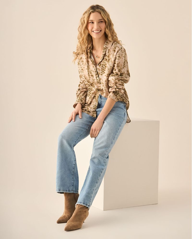 Una prenda que fluye contigo. Esta camisa de manga larga, con estampado de parches abstractos y ruedo curvo, está pensada para quienes disfrutan vestir con identidad. Su cuello clásico y puños con botón completan un diseño versátil que se adapta con elegancia a la rutina o al fin de semana.