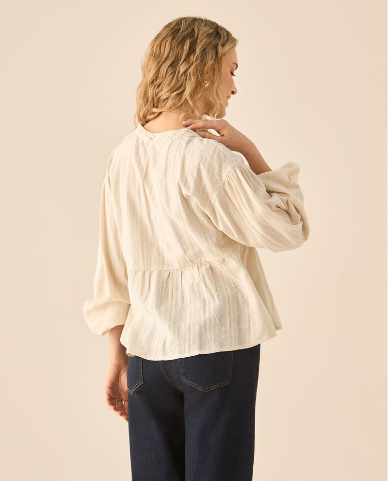 Camisa manga larga con volumen y detalles en crochet para mujer