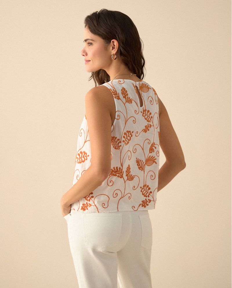 Elegancia en cada detalle. El escote lágrima y los bordados en contraste le dan a esta camisa con cuello redondo un aire fresco y lleno de personalidad.