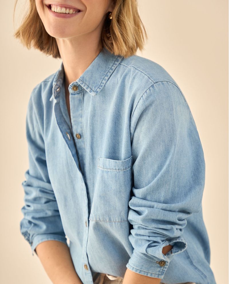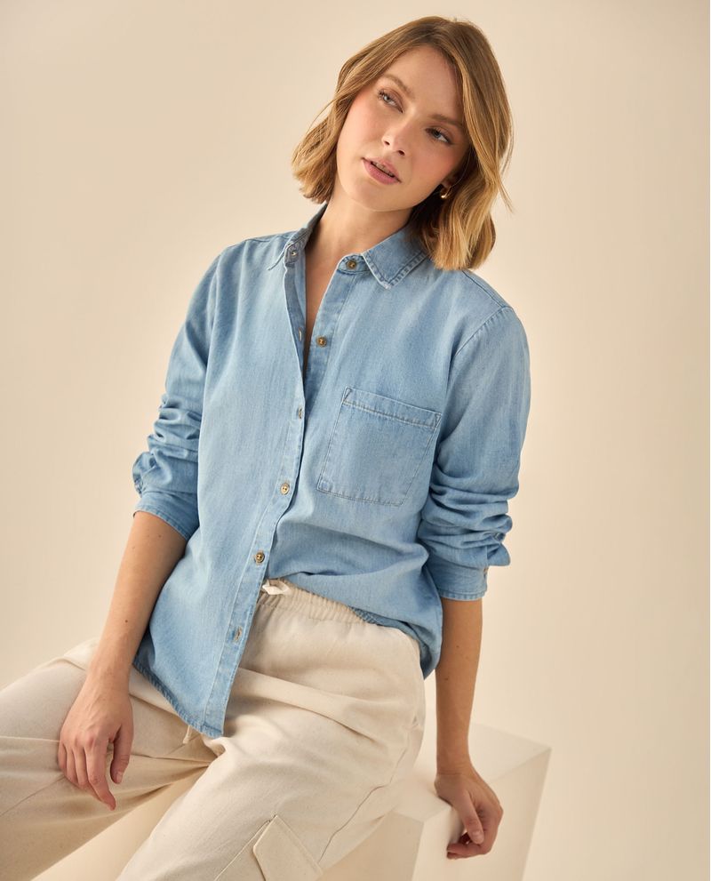 Camisa en corte oversized moderno con botones metálicos contrastantes y bolsillo frontal funcional. Su silueta relajada se adapta naturalmente al cuerpo mientras que el tejido suave garantiza comodidad durante todo el día, perfecta para quienes buscan versatilidad real entre oficina casual y planes de fin de semana.