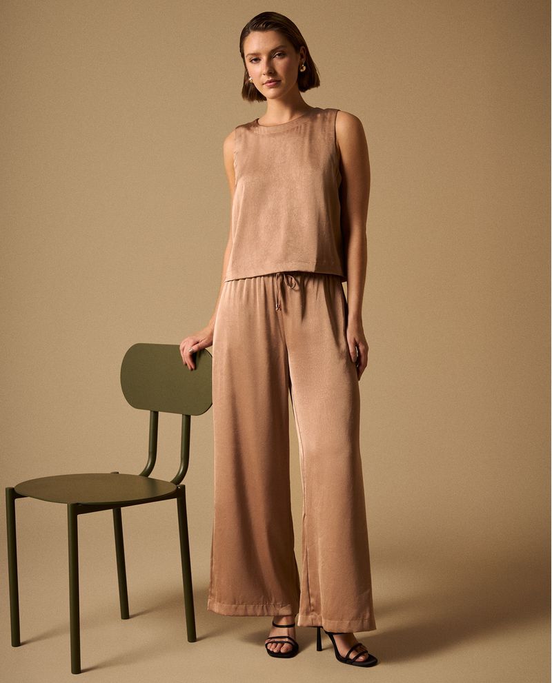 Esta camisa negra sin mangas combina la elegancia minimalista con un detalle posterior único que añade sofisticación. Su corte relajado y tejido de alta calidad la convierten en la pieza versátil que necesitas para múltiples ocasiones, desde reuniones de trabajo hasta eventos casuales elegantes.