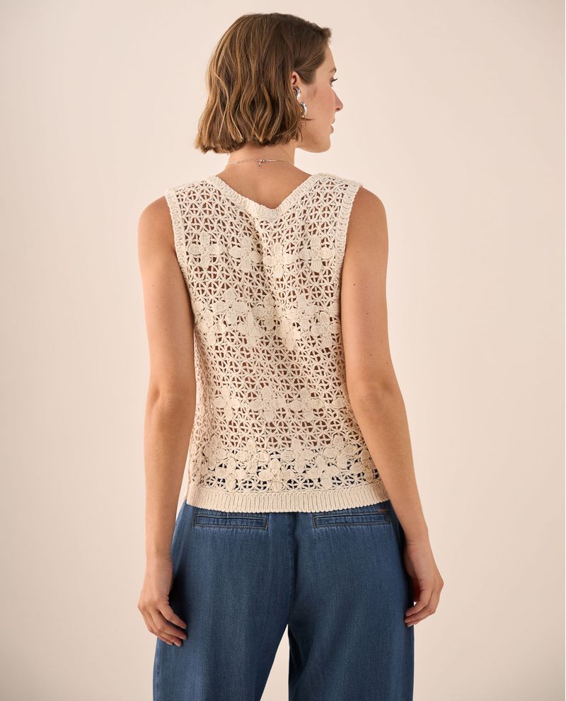 El algodón natural se siente suave contra la piel, mientras que el tejido calado permite una ventilación natural que mantiene la frescura durante todo el día.
