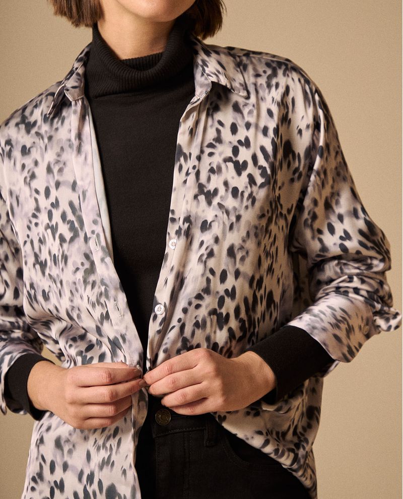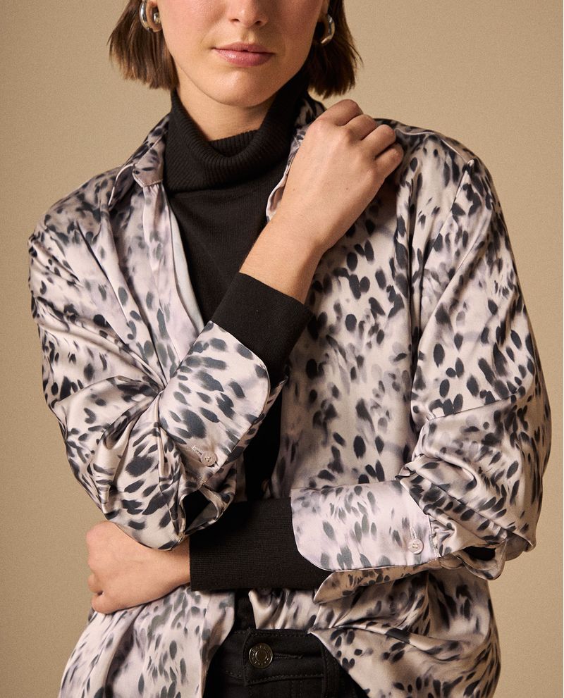 Camisa crudo grisáceo con textura jacquard sutil y acabado mate que aporta sofisticación sin esfuerzo. Su tejido premium mantiene la forma con el uso mientras que el corte regular se adapta cómodamente a diferentes siluetas, ideal para oficina y eventos casuales donde necesitas lucir pulida pero relajada.