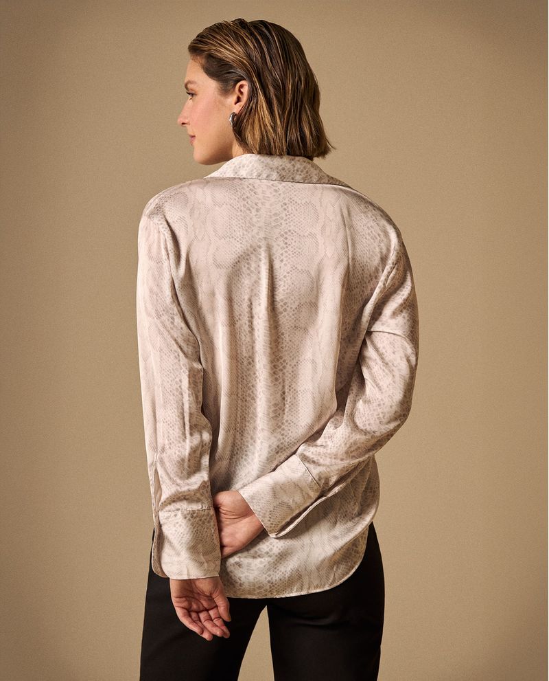 Camisa crudo grisáceo con textura jacquard sutil y acabado mate que aporta sofisticación sin esfuerzo. Su tejido premium mantiene la forma con el uso mientras que el corte regular se adapta cómodamente a diferentes siluetas, ideal para oficina y eventos casuales donde necesitas lucir pulida pero relajada.