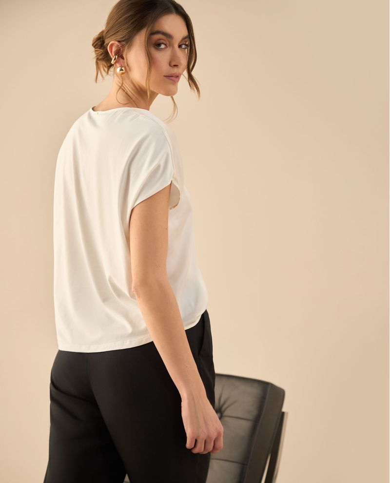 Con el brillo justo para destacar sin esfuerzo. Ligera, cómoda y con ese toque elegante que va con todo, para que la uses con tus prendas inferiores favoritos y terceras piezas que le den ese twist de estilo que nunca pasa de moda.