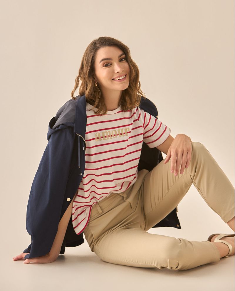 RopaCamisetasCamiseta a rayas con bordado para mujer
