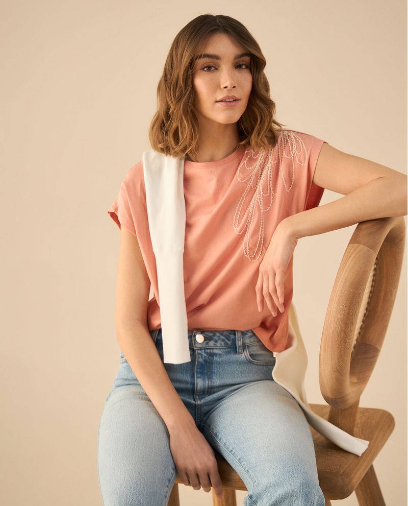 Brilla sin esfuerzo. Detalle con apliques en los hombros y una silueta cómoda para cada plan improvisado.