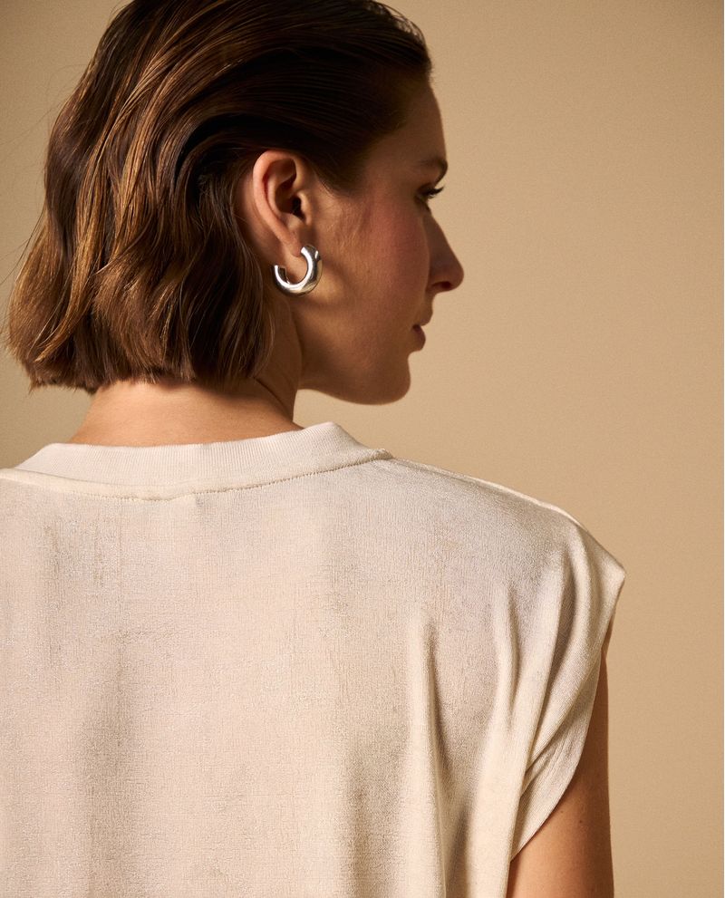 Camiseta con silueta oversized y mangas extendidas que aporta ese toque moderno a tus básicos. Su tejido con elastómero garantiza comodidad durante todo el día, mientras que el corte relajado funciona tanto para looks casuales como para crear capas sofisticadas. Ideal para quienes buscan renovar sus esenciales con piezas que realmente funcionen en múltiples contextos.