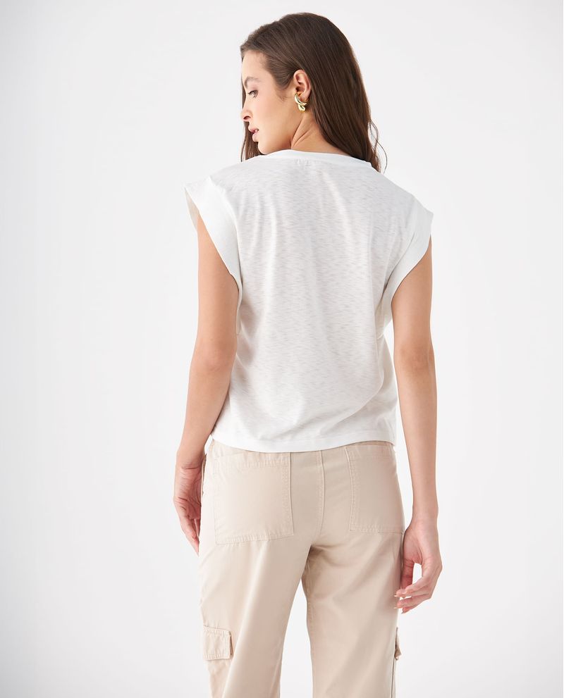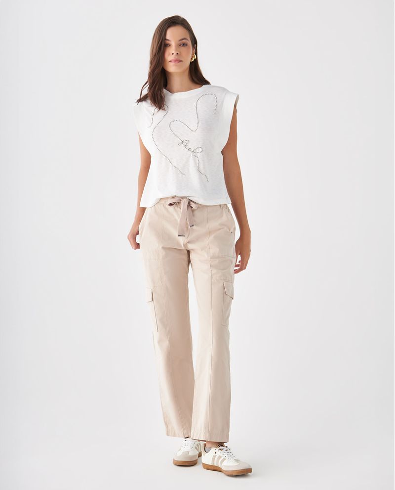 Añade un toque de frescura a tu guardarropa con esta camiseta de manga sisa. Su cuello redondo y los apliques en el frente le brindan un diseño atractivo y moderno. La tela fluida asegura comodidad y un movimiento suave, perfecta para esos días de relax o para combinar con tus prendas favoritas. Versátil y chic, esta camiseta será tu nueva elección para cualquier ocasión.