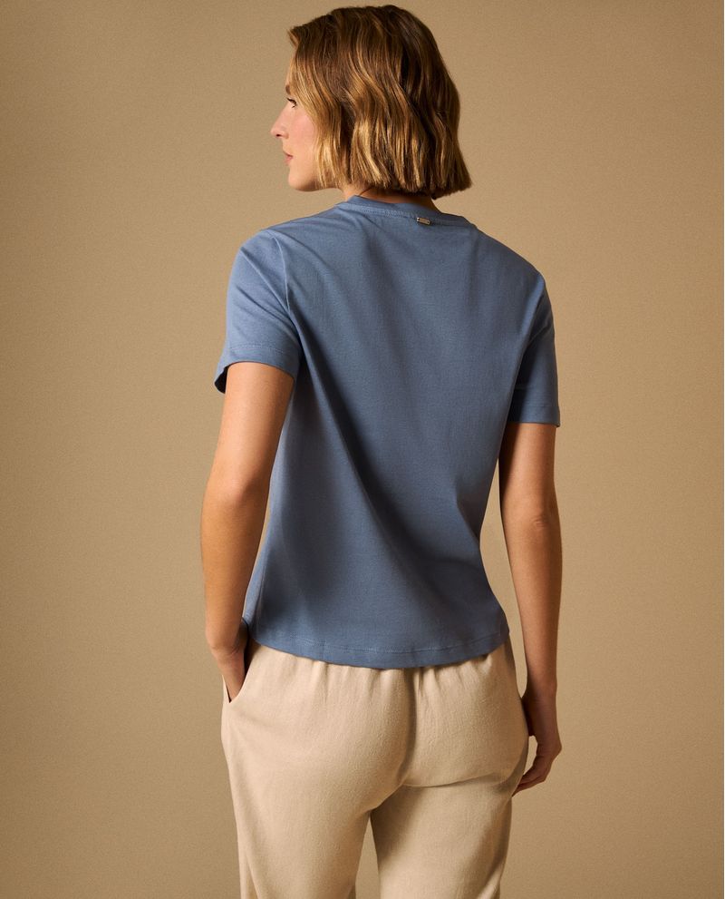 Camiseta Blanca con Bordado en Encaje Camiseta blanca con bolsillo bordado en encaje que aporta textura y sofisticación a tus básicos. Su corte regular se adapta cómodamente mientras que el detalle artesanal la convierte en una pieza distintiva para uso diario y ocasiones especiales. ¿Cómo se siente? Suave al tacto gracias al algodón natural, con una caída fluida que se mueve contigo. El bordado añade una textura delicada que se aprecia tanto visual como táctilmente. ¿Cómo es el fit y para quién es ideal? Corte regular que sienta bien en todo tipo de siluetas, con largo que permite usar tanto por dentro como por fuera. La manga corta cae naturalmente sin ajustar en exceso. ¿Cómo usarlo? Para el día a día, combínala con jeans y zapatillas blancas, añadiendo un blazer cuando necesites un look más pulido. En ocasiones casuales elegantes, úsala con pantalones de vestir y un cardigan ligero. Para fines de semana relajados, combínala con shorts de lino y sandalias, completando con una chaqueta denim para las tardes frescas. ¿Por qué lo necesitas? Porque el bordado artesanal en encaje genera ese detalle diferenciador que buscan quienes valoran la calidad. Un básico que se distingue por su trabajo manual único. ¡Descubre esa textura artesanal hoy mismo!