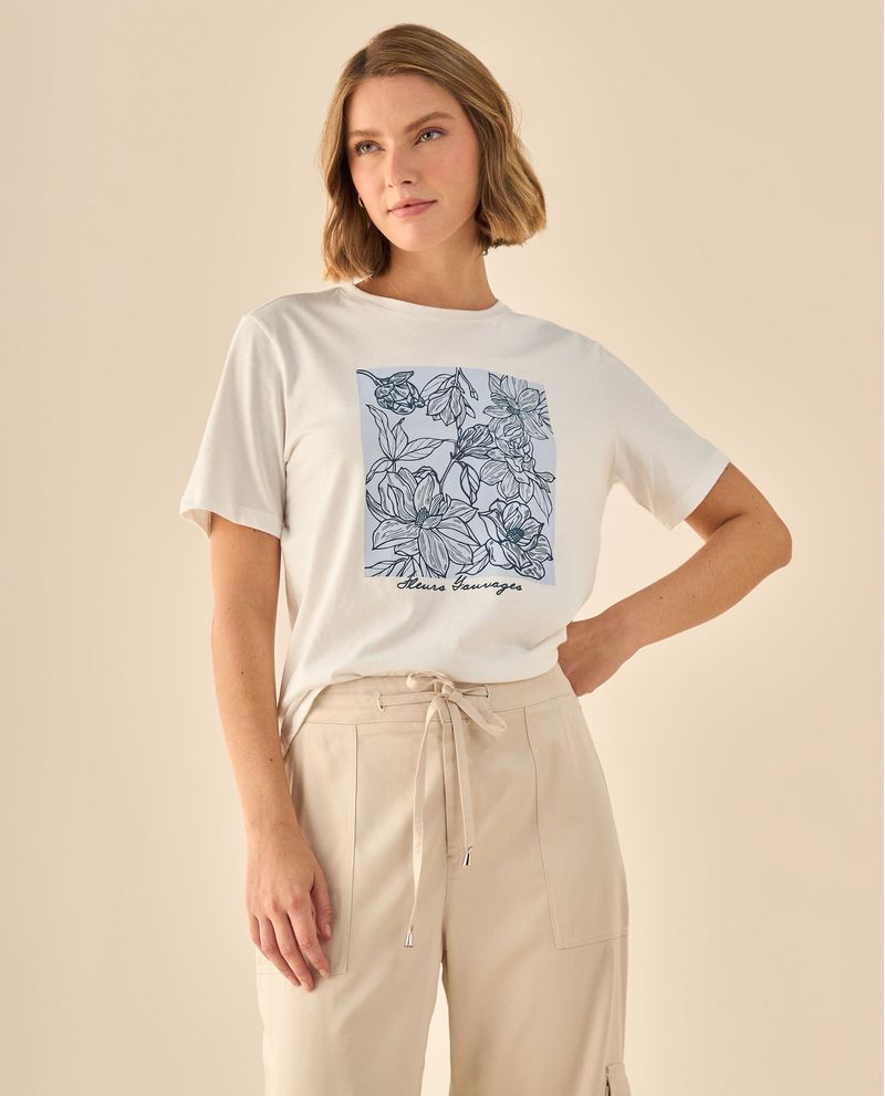 Camiseta con estampado floral lineal que aporta sofisticación artística a tus looks casuales. Su diseño botánico exclusivo y tejido suave la convierten en esa pieza diferenciadora que necesitas para destacar con elegancia natural. Corte regular que sienta bien y se adapta a múltiples ocasiones, desde reuniones creativas hasta planes de fin de semana.