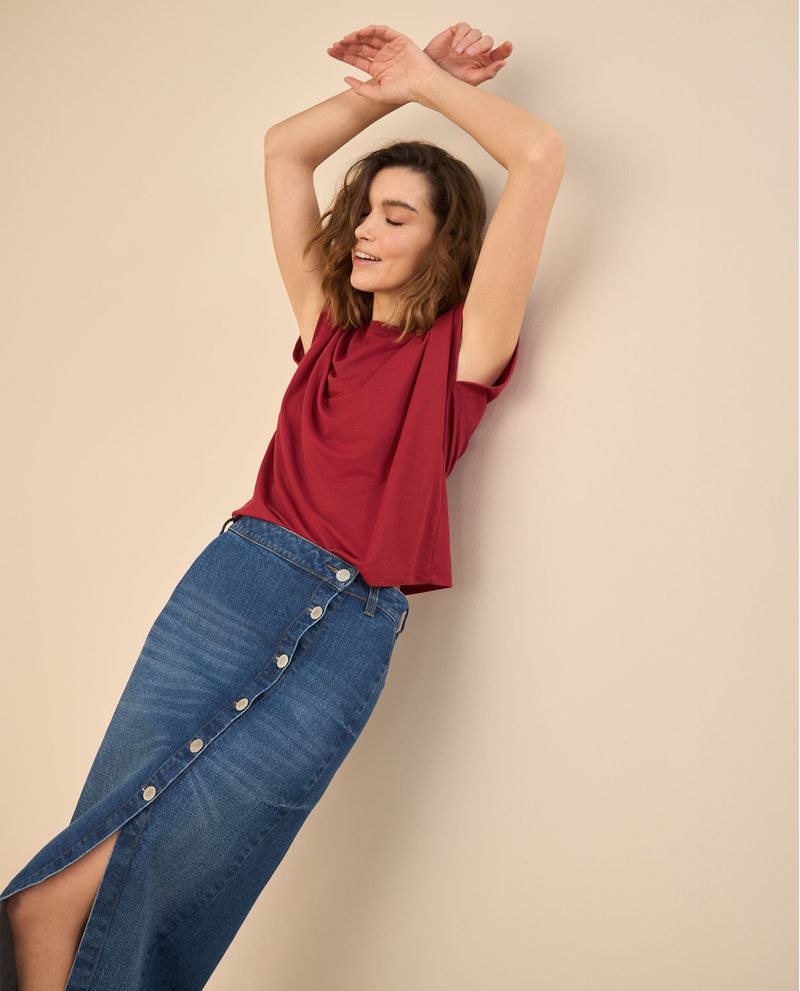Lo simple, ¡también puede enamorar! Esta camiseta con mini bordado en forma de corazón y recogido en los hombros es ese básico con estilo que se adapta a ti y a tu día, para que te sientas cómoda mientras destacas.