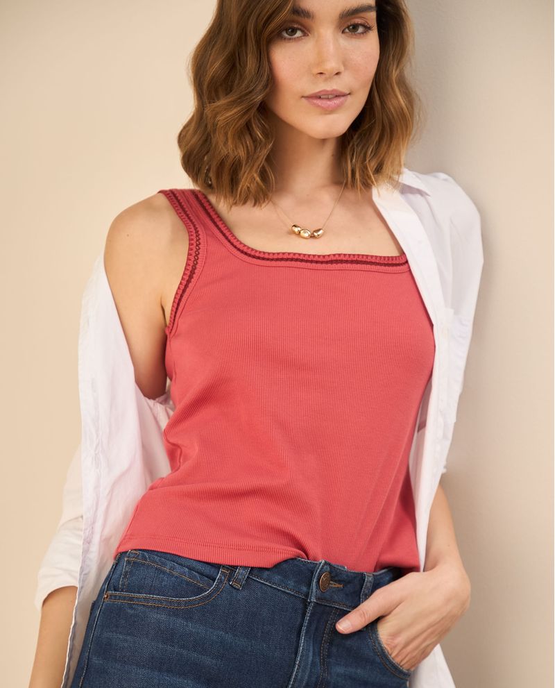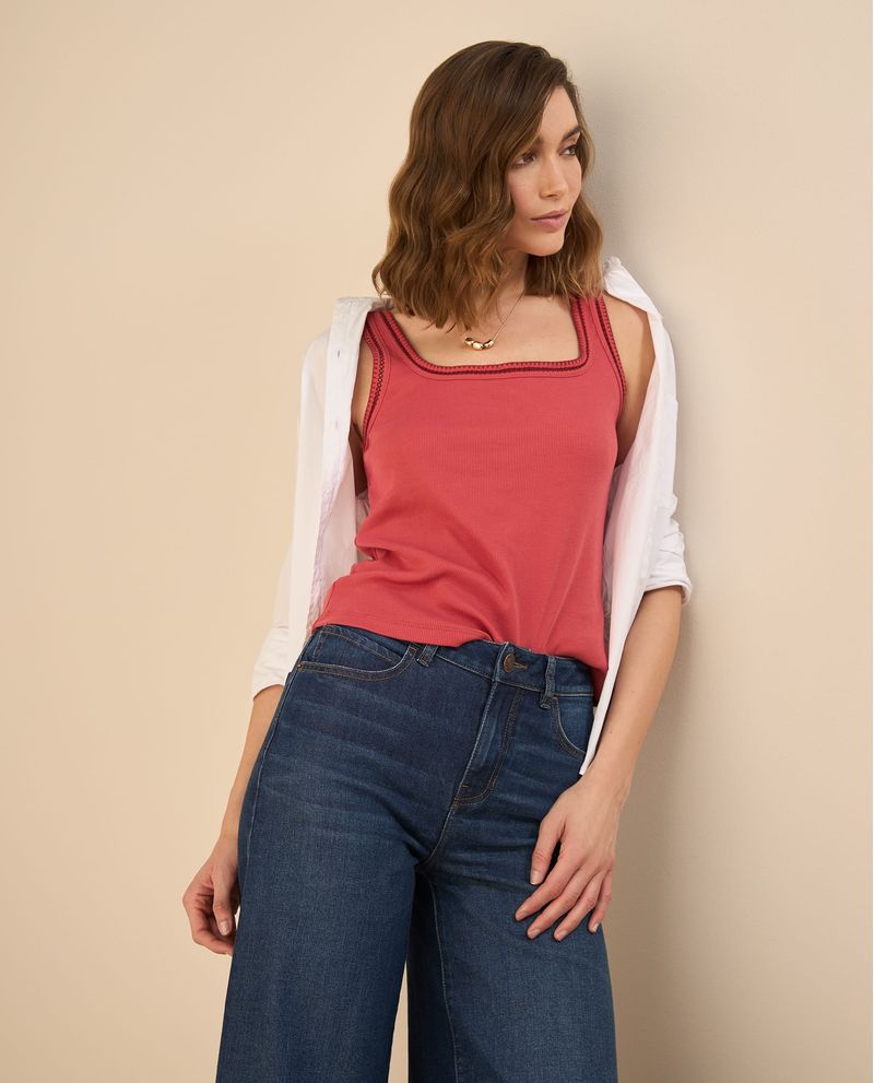 Esta camiseta de tela acanalada elástica equilibra lo clásico con un toque inesperado: detalles desagujados en el escote que suman textura y originalidad. Su silueta ajustada se adapta sin esfuerzo, creando un fit tan cómodo como favorecedor. ¡Lúcela y destaca a donde vayas!