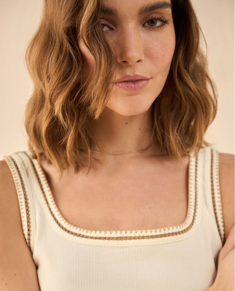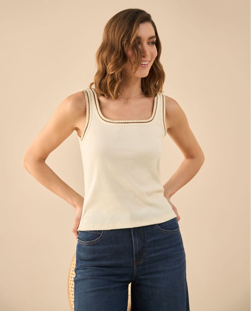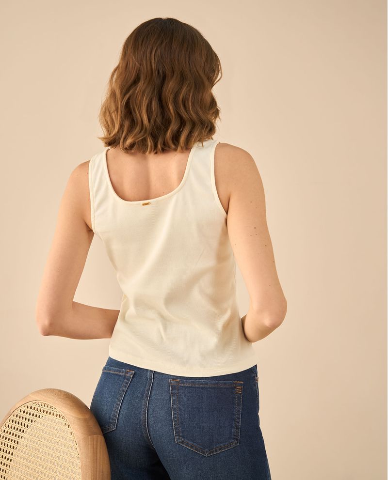 Esta camiseta de tela acanalada elástica equilibra lo clásico con un toque inesperado: detalles desagujados en el escote que suman textura y originalidad. Su silueta ajustada se adapta sin esfuerzo, creando un fit tan cómodo como favorecedor. ¡Lúcela y destaca a donde vayas!