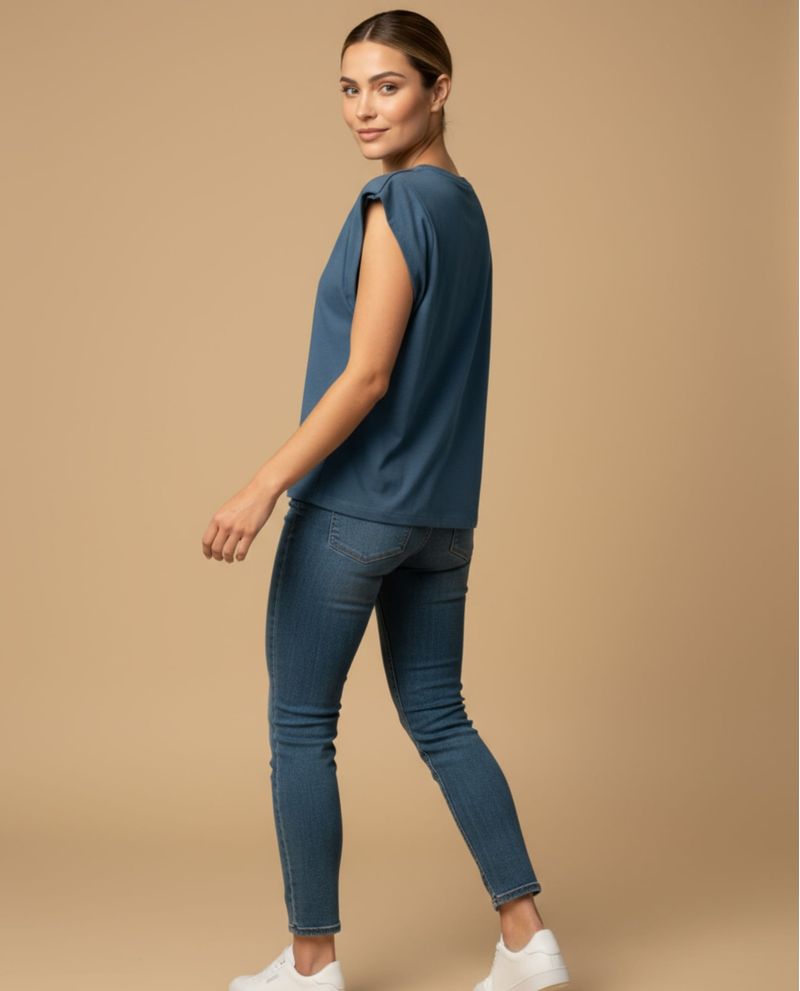El tejido abraza tu piel con suavidad natural mientras que el corte relajado permite que el aire circule libremente, creando una sensación de frescura durante todo el día.