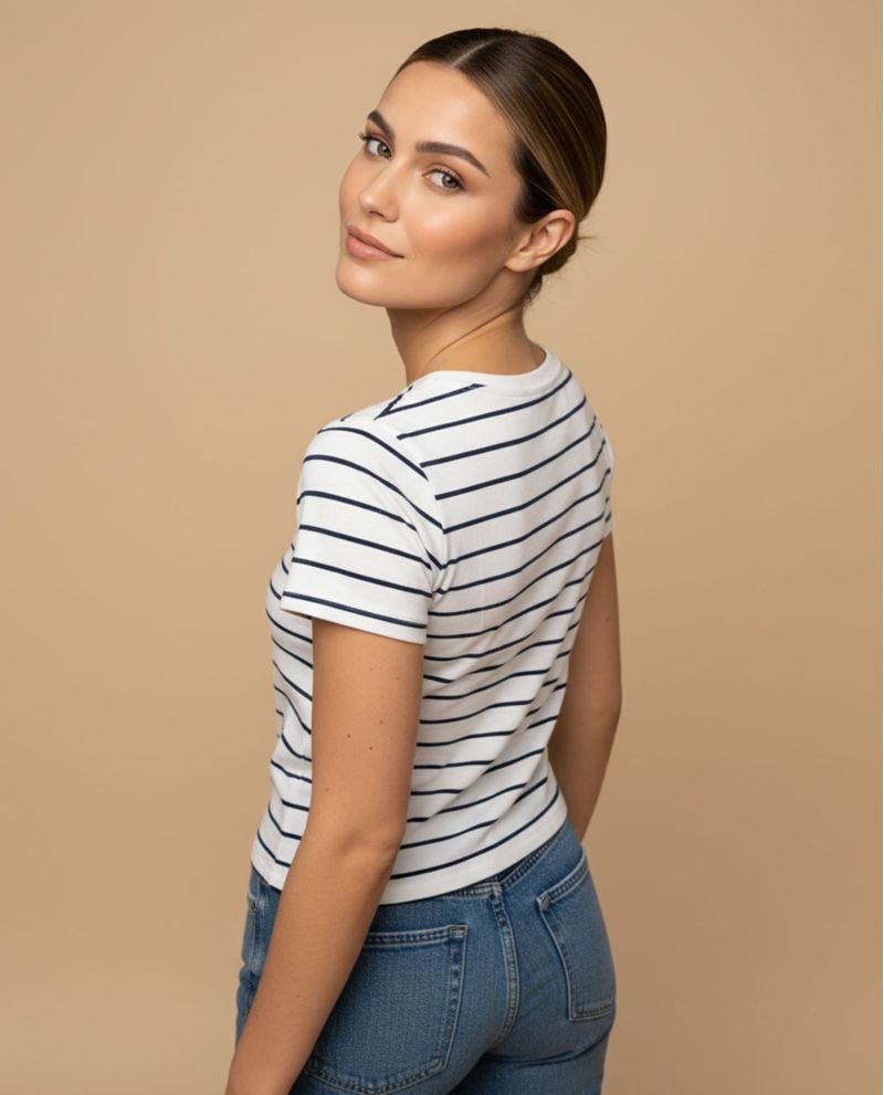 Porque las rayas horizontales bien proporcionadas crean ese efecto visual que distingue tus básicos del montón. Una pieza que resuelve múltiples contextos manteniendo su personalidad distintiva. ¡Experimenta esa versatilidad natural ya!