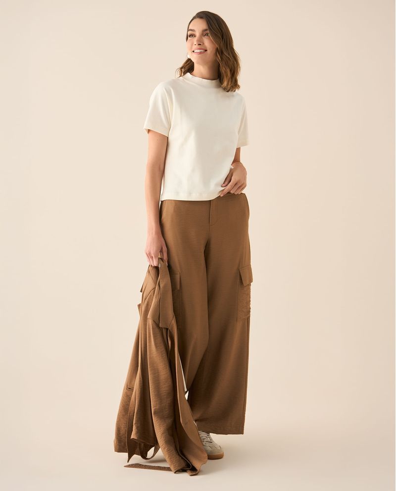 El poder de lo esencial. Esta camiseta de cuello redondo en rib y manga corta conquista por su textura suave. Ideal para acompañarte todos los días, elevando lo simple con un toque de sofisticación. Llévala con jeans rectos en el fin de semana o con pantalones en días casuales de oficina.