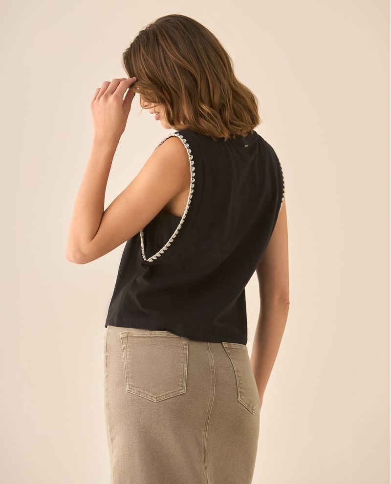 Una pieza tan auténtica y versátil como esta no puedo faltar en tus planes casuales, para que te sientas increíble mientras redescubres tu estilo y disfrutas de máxima comodidad. Su diseño de manga sisa con apliques bordados le da ese must que, sin duda, es el diferenciador especial.