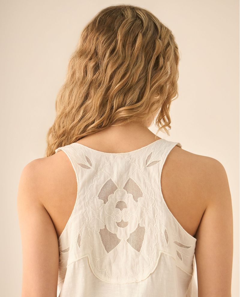 Si estar cómoda y lucir increíble tuvieran una personificación, ¡sin duda sería esta camiseta! Su diseño clásico de manga sisa y cuello redondo la hace súper práctica y cómoda, mientras que sus detalles desagujados y tejidos en posterior le dan ese aire de delicadeza y feminidad que siempre buscas en cada prenda.