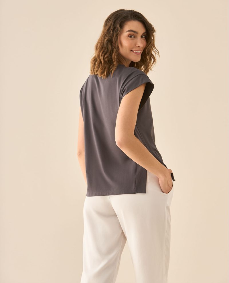 ¡Cada detalle habla de ti! Esta camiseta combina frescura con actitud y confianza. Su diseño de manga sisa y cuello redondo la convierte en la básica perfecta para acompañar tus planes casuales, mientras que sus letras bordadas y estampadas en el frente le dan ese aire a la moda y lleno de estilo que hace la diferencia en cada look.