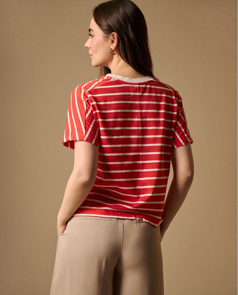 Camiseta Rayas Rojo Cerezo con Cuello Blanco