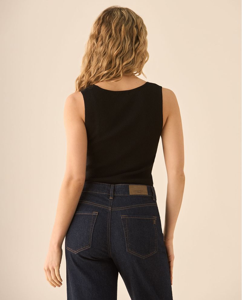 ¡Menos es más pero mejor si es con estilo! Esta camiseta tejida redefine la esencia del minimalismo con un toque de elegancia relajada. Su escote en V alarga visualmente tu figura, mientras que la manga sisa revela justo lo necesario para sentirte fresca, cómoda y con total libertad. La textura acanalada y el tejido con elasticidad se adaptan suavemente a tu silueta, es la prenda ideal para esos días en los que quieres verte bien con lo más simple. Con Esprit, cada detalle habla de ti, incluso cuando parece sutil.