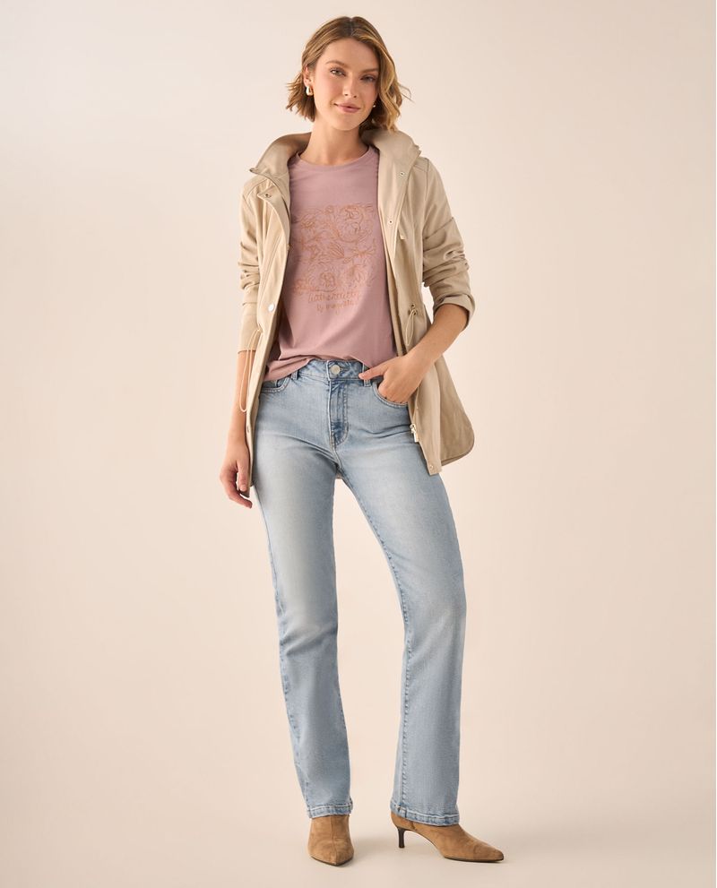 Corte regular que se adapta cómodamente al cuerpo sin ceñirse en exceso, con manga corta que termina a media altura del brazo. El largo llega justo a la cadera, creando una silueta equilibrada que funciona tanto sola como para hacer capas. Ideal para mujeres que buscan comodidad sin sacrificar estilo.