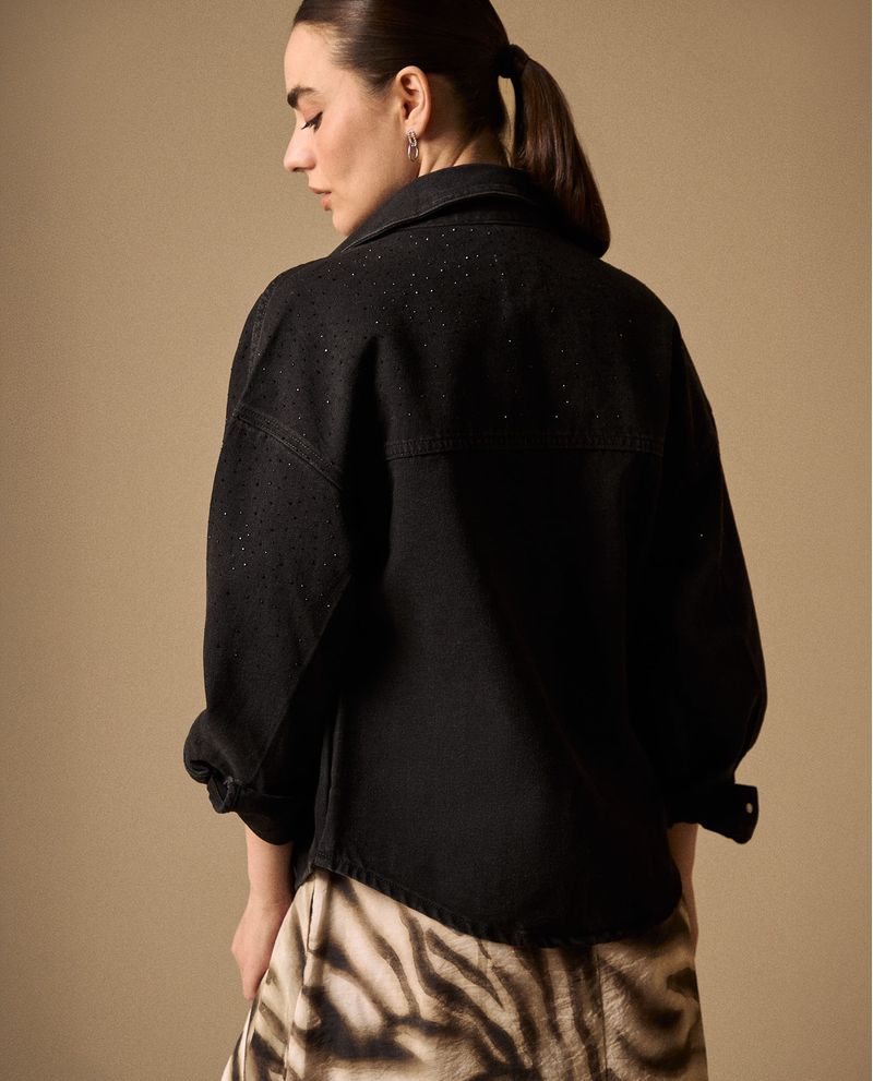 Porque sus micro brillos crean ese efecto sofisticado que distingue esta chaqueta del denim básico. Una pieza que resuelve múltiples ocasiones con una sola compra inteligente.